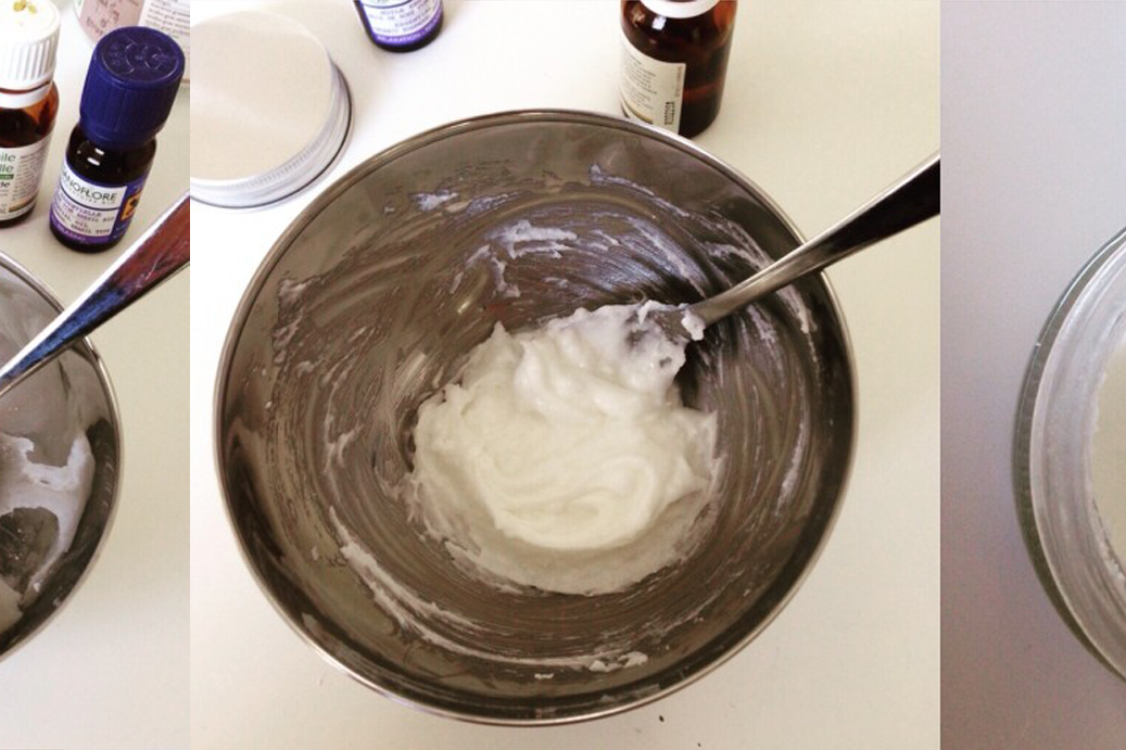 Si comme moi, votre déodorant coule en été et devient une galère à appliquer ou encore à transporter en voyage, je vous conseille de rajouter une petite cuillère de pastille de cire d’abeille (il suffit de refaire fondre le tout au bain marie et touiller jusqu’à ce que la cire soit fondue, vous laissez solidifier une heure au frigo et hop votre déodorant restera onctueux comme une crème tout l’été ! )